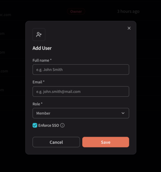 Open the Users Panel via the Dashboard or via the Menu (top left), under Settings. Here are all the users associated with your team’s account. View the Role type assigned to them (Owner, Admin or Member), when they last logged in to Secure Redact, and when they became a user. Add, edit or delete users via the Users Panel.